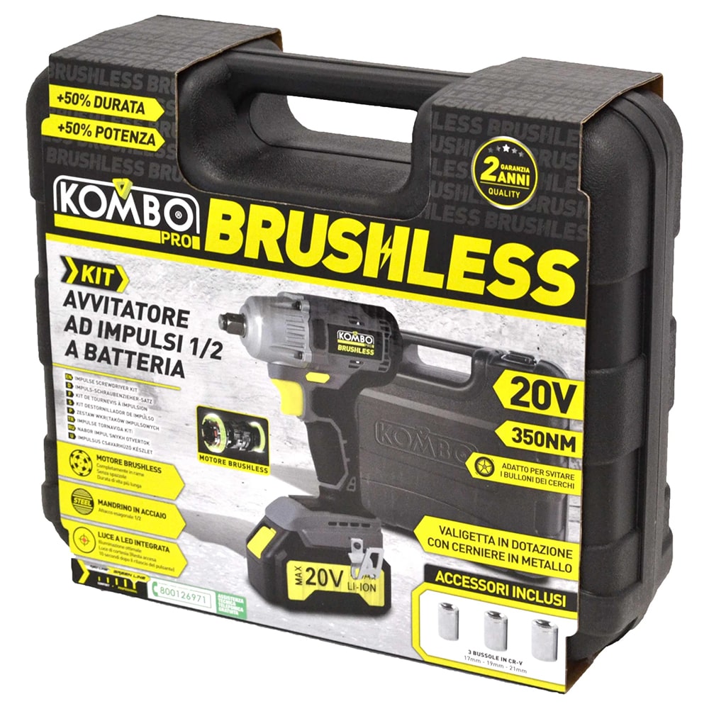 Avvitatore a impulsi brushless 1/2" svitabulloni KOMBO PRO con batteria 20V 4Ah e kit accessori