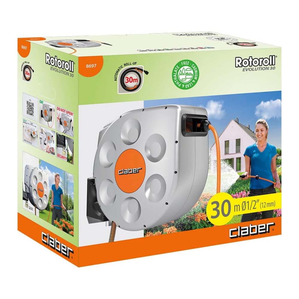 Avvolgitubo automatico da parete CLABER 8697 ROTOROLL EVOLUTION mt.30 x 1/2" con raccordi