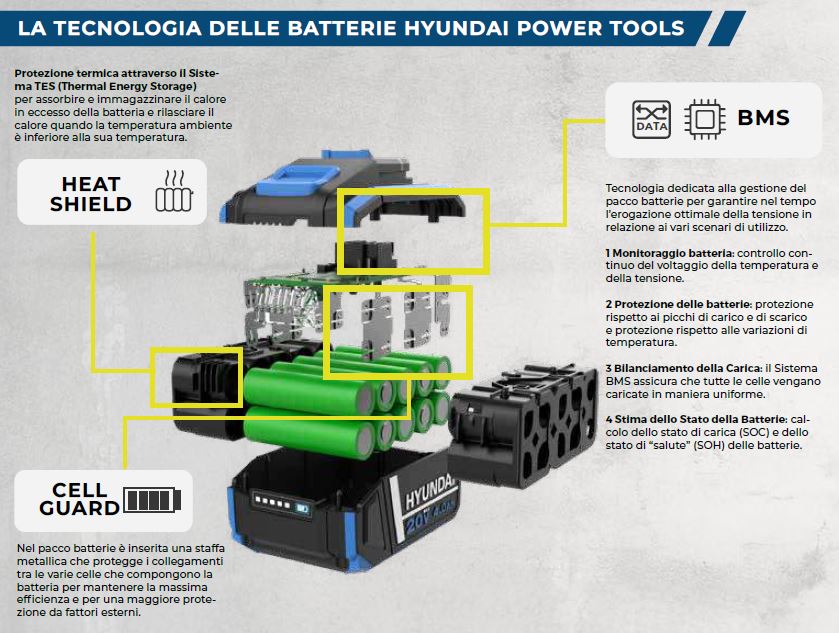 Ideale per alimentare utensili ad alte prestazioni HYUNDAI Power Tools.