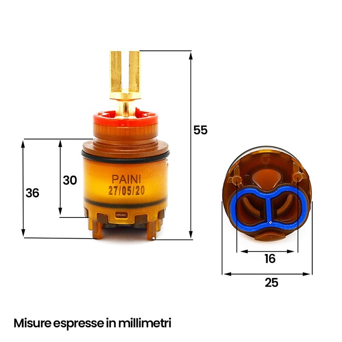 Cartuccia di ricambio per miscelatore monocomando PAINI mm.25 alta