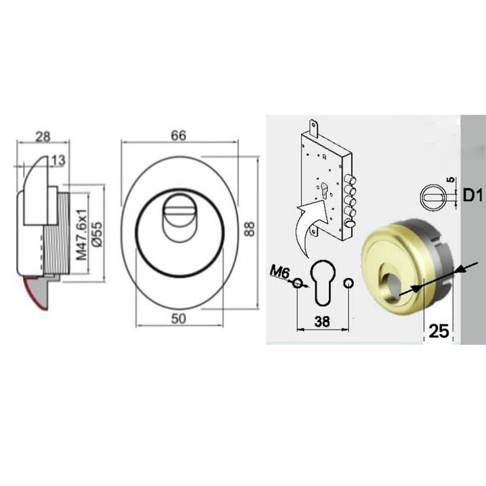 Per porte blindate con cilindro sagomato.