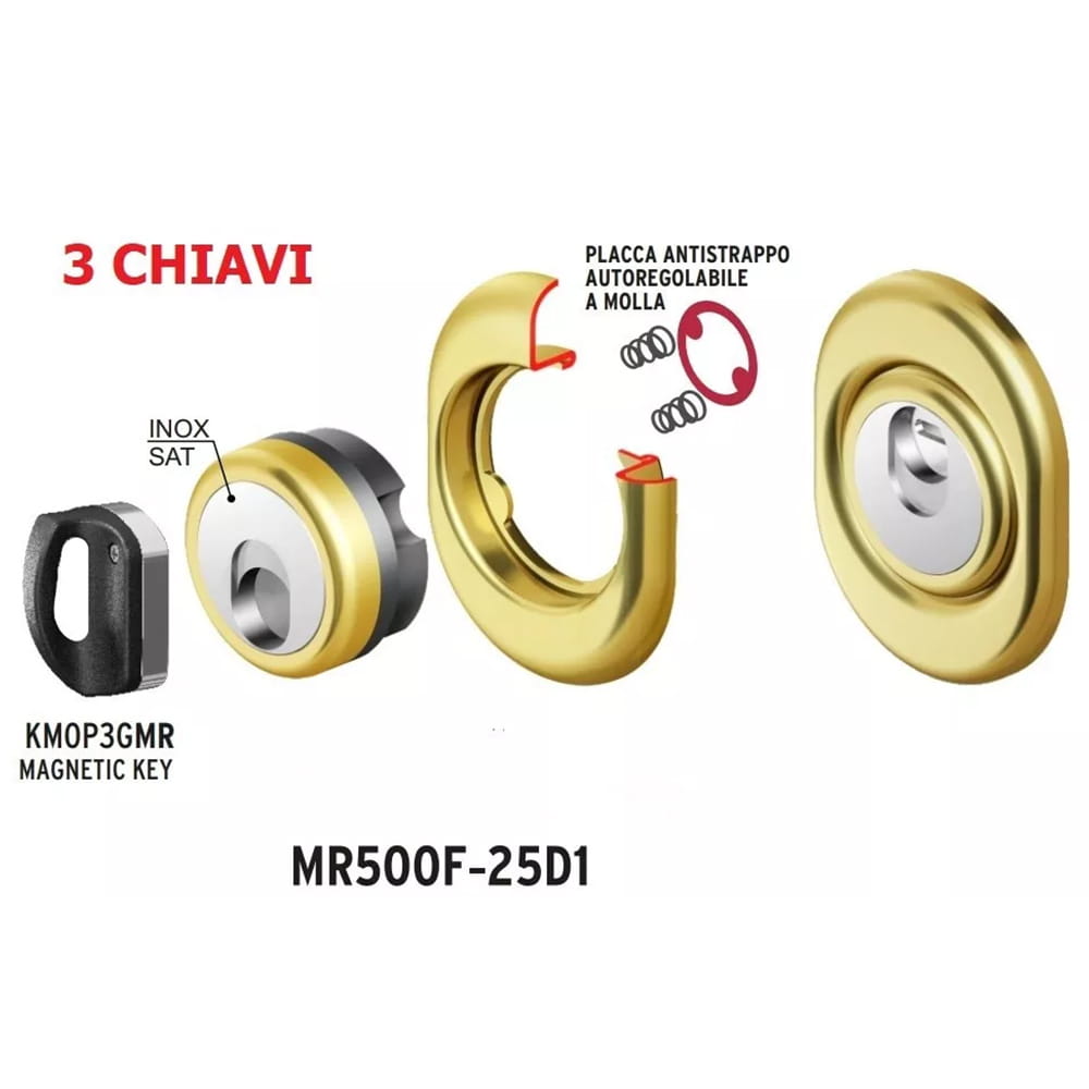 MR500, certificato classe 4, è la protezione magnetica di ultima generazione per contrastare gli attacchi con acido e i tentativi di rottura, strappo (mostrina + corpo) e perforazione del cilindro, nonché di estrazione del nottolino.