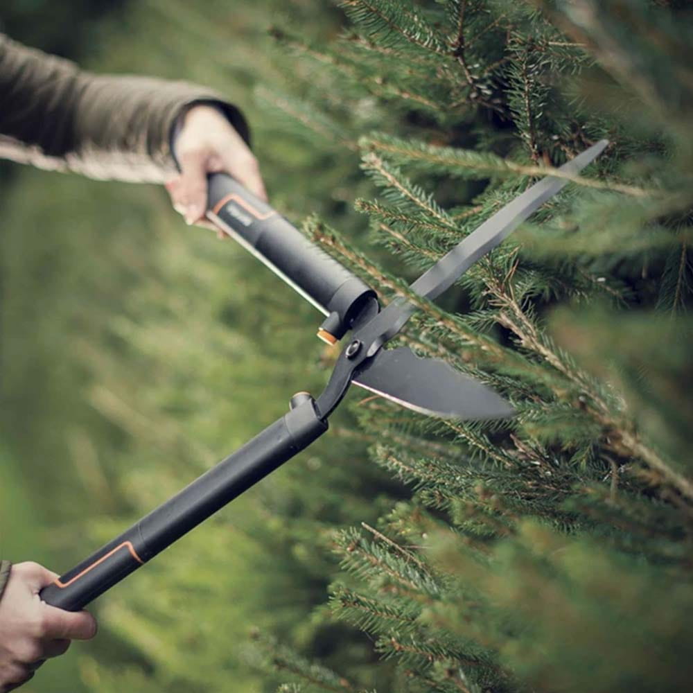 Le cesoie per siepi di Fiskars sono ideali per potare e modellare siepi, arbusti e cespugli. Grazie alle impugnature stabili e leggere in plastica, non farete alcuna fatica. Gli ammortizzatori che proteggono le articolazioni riducono l'impatto di eventuali colpi. Le speciali lame ondulate assicurano una presa ottimale sull'oggetto da tagliare. Le lame possono poi essere affilate con facilità.