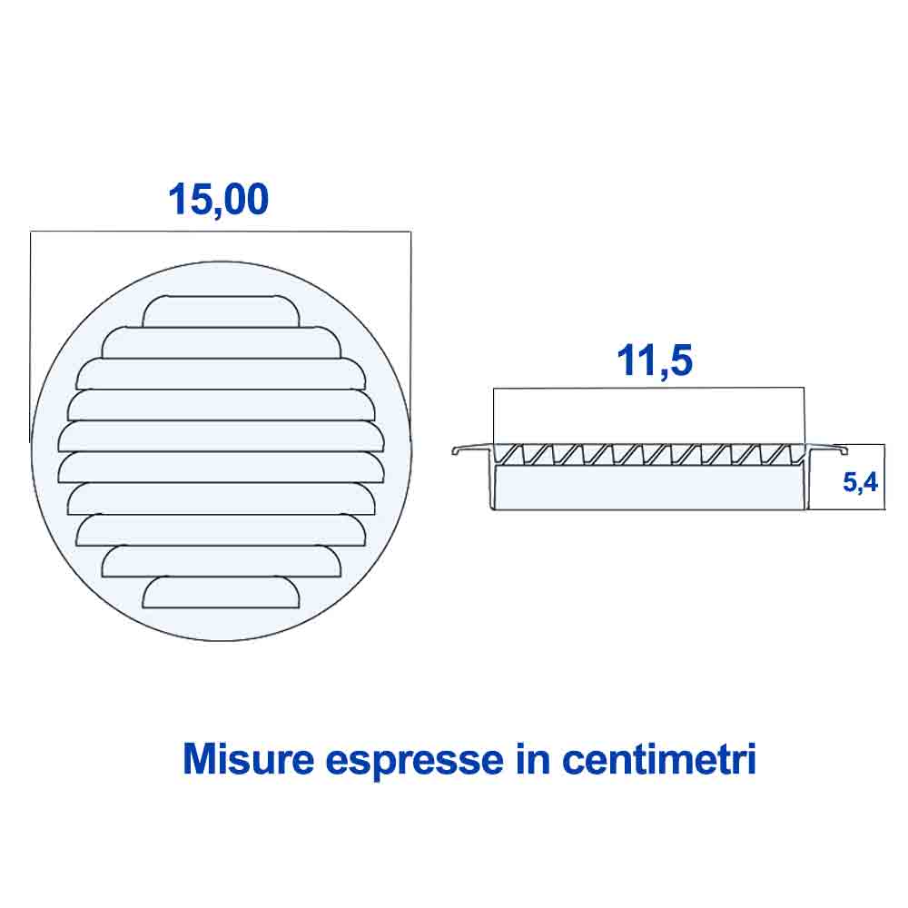 Griglia di aerazione in alluminio tonda con rete anti insetti.
