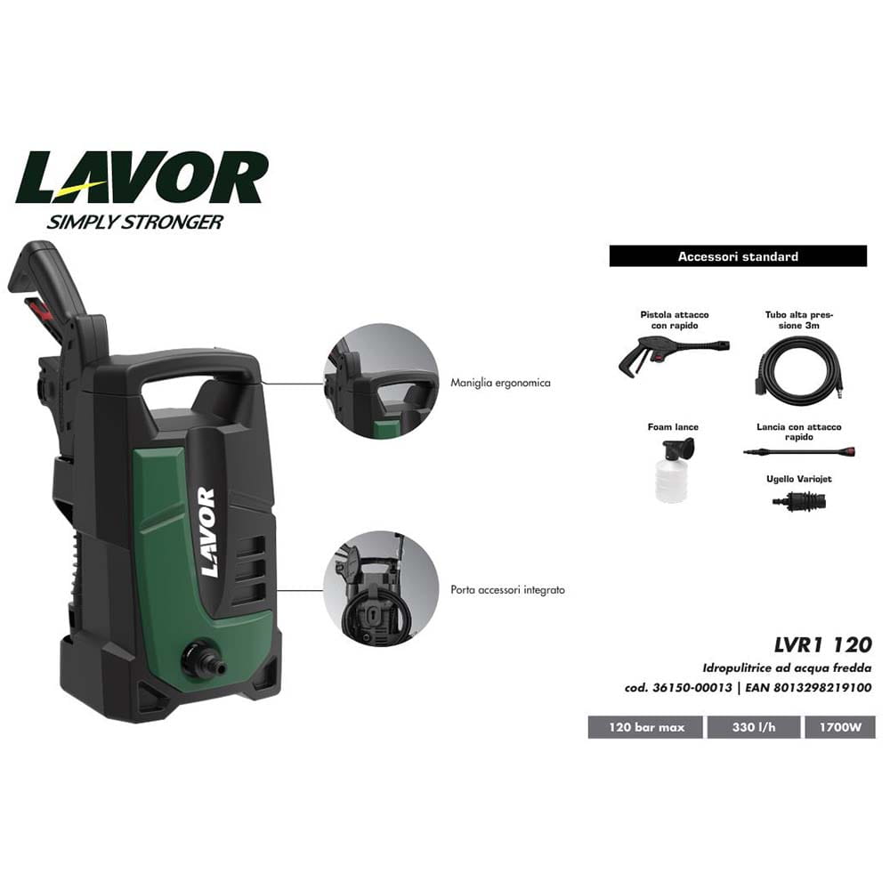 Idropulitrice ad acqua fredda LAVOR LVR1 120 1700W 120 Bar con accessori