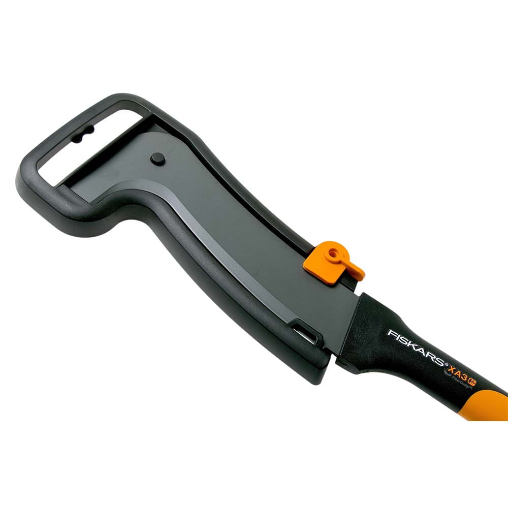 Roncola FISKARS WOODXPERT XA3 con lama curva in acciaio e bordo tagliente.