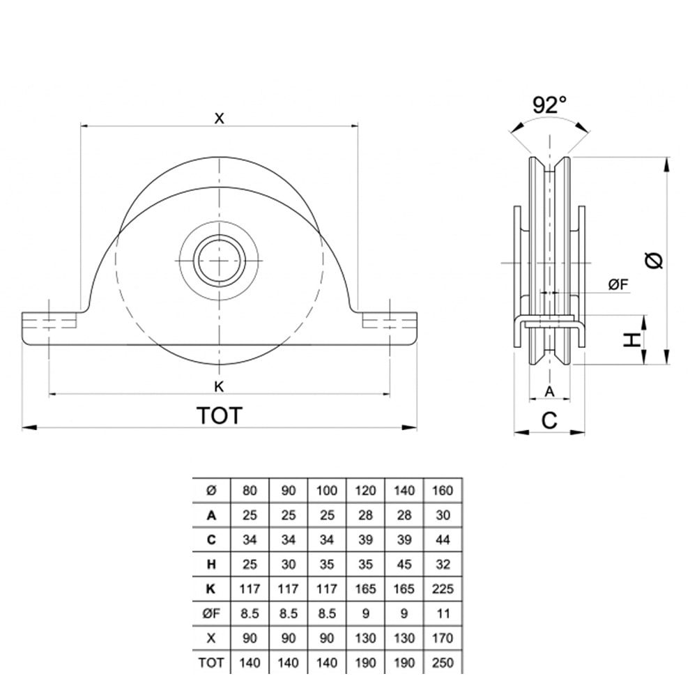 Ruota con supporto interno per cancello scorrevole gola a V 2 cuscinetti IBFM 393/A varie misure