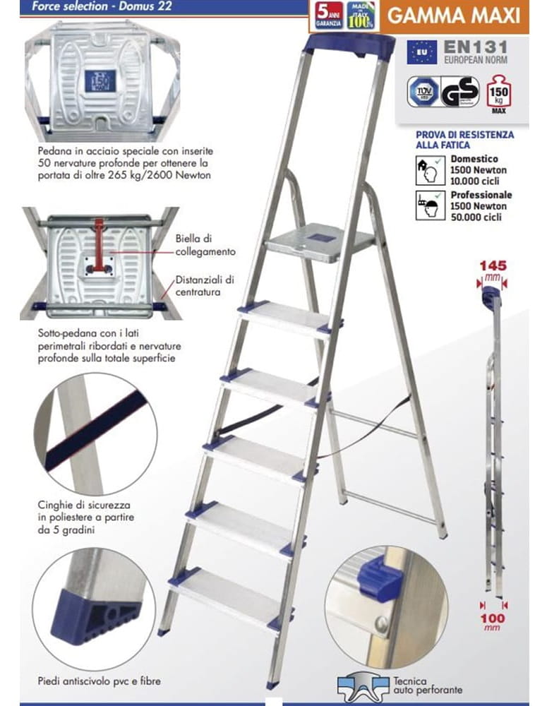 Scala in alluminio di altissima qualità GAMMA MAXI a 5 gradini.