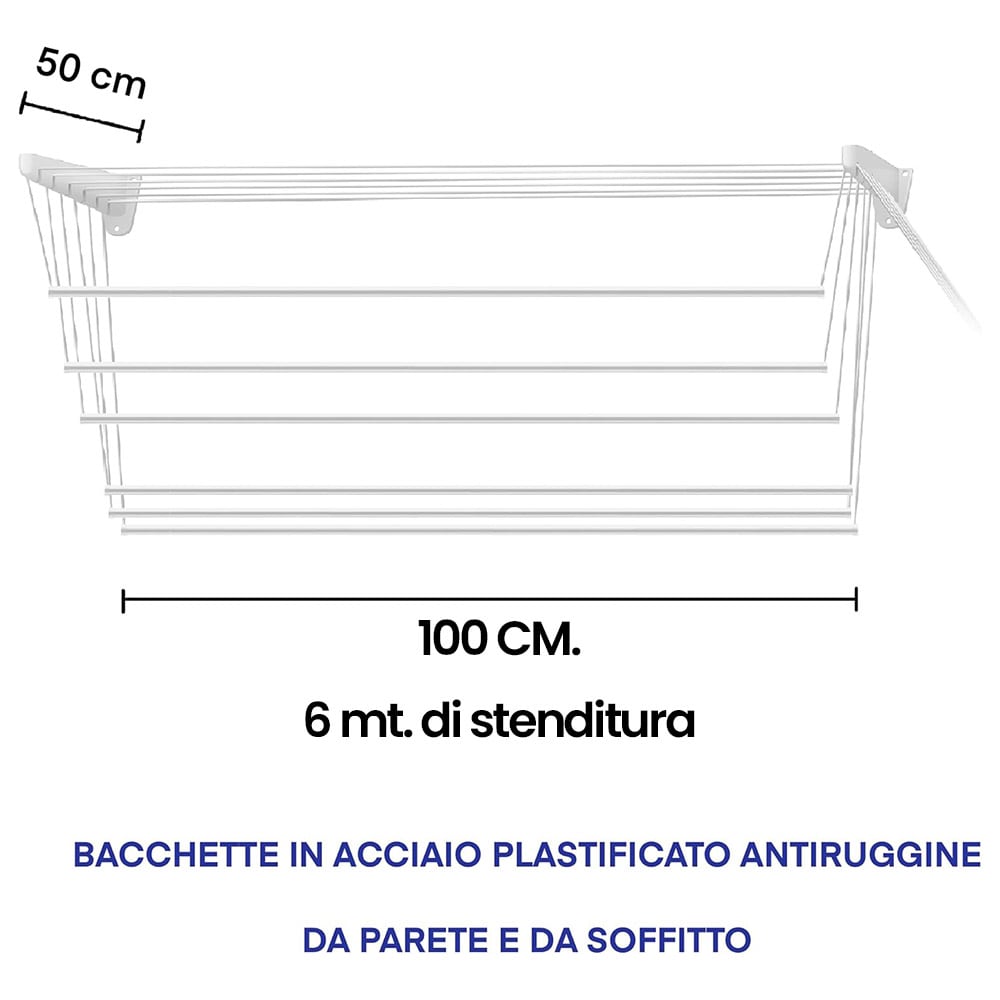 Stendibiancheria da parete e soffitto cm.100 JUMBO STEED 6 metri di stenditura