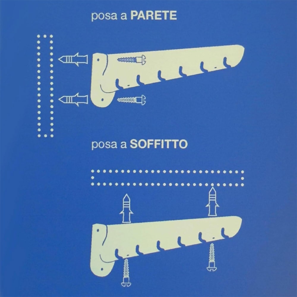 Sistema saliscendi pratico e salvaspazio da fissare a parete o a soffitto.