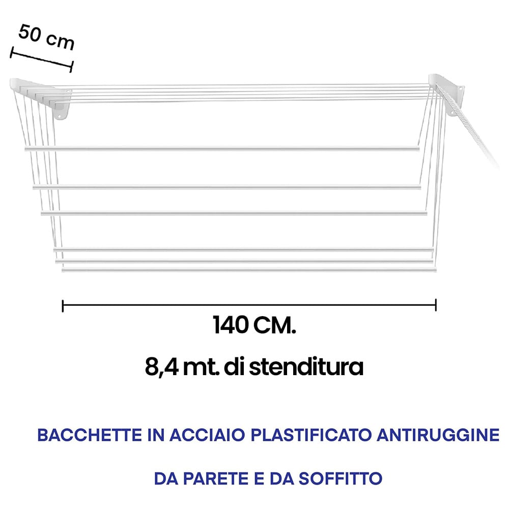 Stendibiancheria da parete e soffitto cm.140 JUMBO STEED 8,4 metri di stenditura