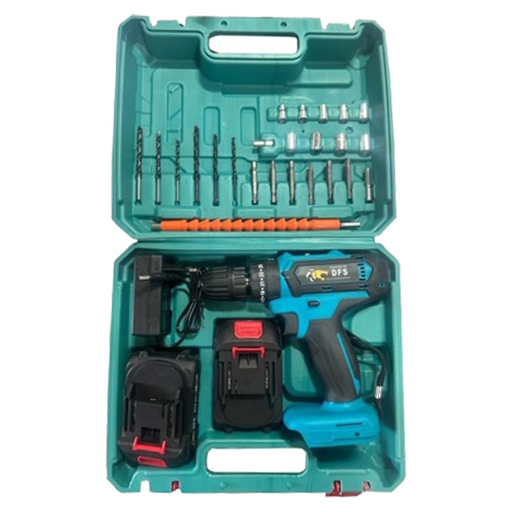 Trapano avvitatore a batteria con percussione 21V 2Ah litio 2 batterie con valigetta e kit inserti