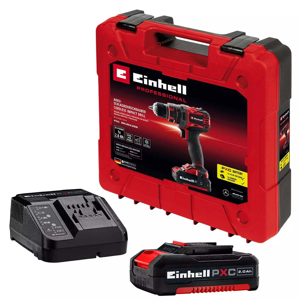 Trapano avvitatore a batteria con percussione EINHELL TP-CD 18/60 Li- i BL 1 x 18V 2Ah + caricabatterie